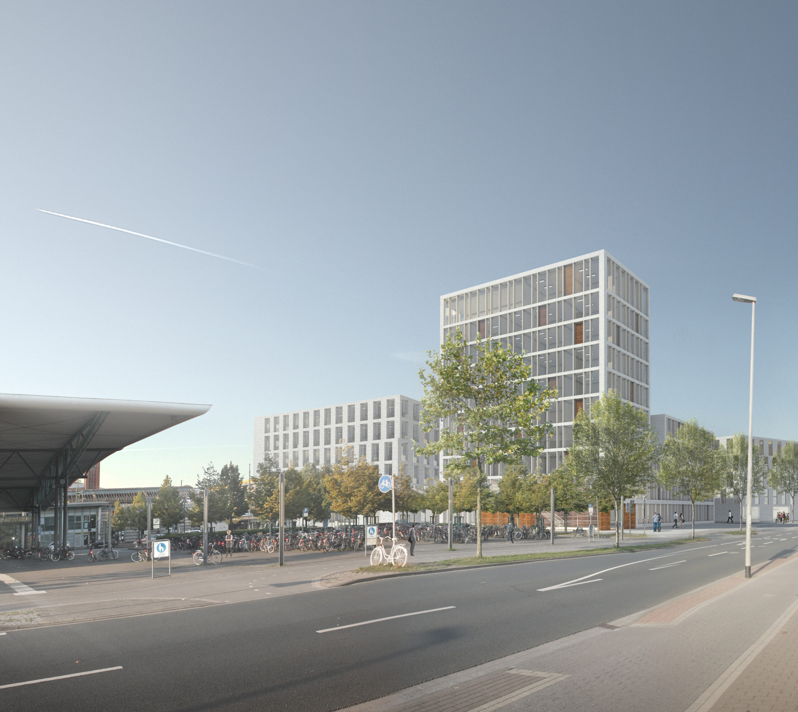 Das Konzept sieht eine durchmischte Bebauung für Gewerbe Kultur und Wohnen vor. Durch eine Grünzone mit topografisch modellierter Landschaft wird eine hohe Qualität für die Durchwegung und den Aufenthalt, sowie eine starke Adressbildung für sich ansiedelnde Firmen geschaffen. Zur Bahnstrecke sorgt eine sechsgeschossige Bebauung für den nötigen Schallschutz. Im Norden orientieren sich die Bauvolumen an der Kleinteiligkeit der Donnerschweer Straße. Zum Bahnhofsplatz ist ein Hochpunkt angeordnet. Der Ringlokschuppen wird durch eine Aufstockung gestärkt und zusätzlich belebt.