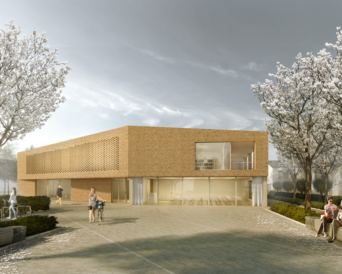 Das zentrale Element des Entwurfes bildet der Gemeindeplatz. Durch seine Gliederung kann der Platz auf vielfältige Art genutzt oder bespielt werden. Er dient dabei als verbindendes Element zwischen den neuen und den vorhandenen Bauten.